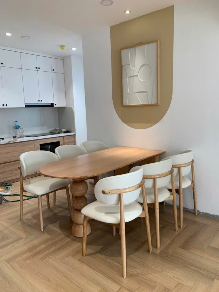 Bộ bàn ăn 6 ghế , gỗ tần bì , chân gỗ quả bóng kiểu dáng hiện đại – GS022