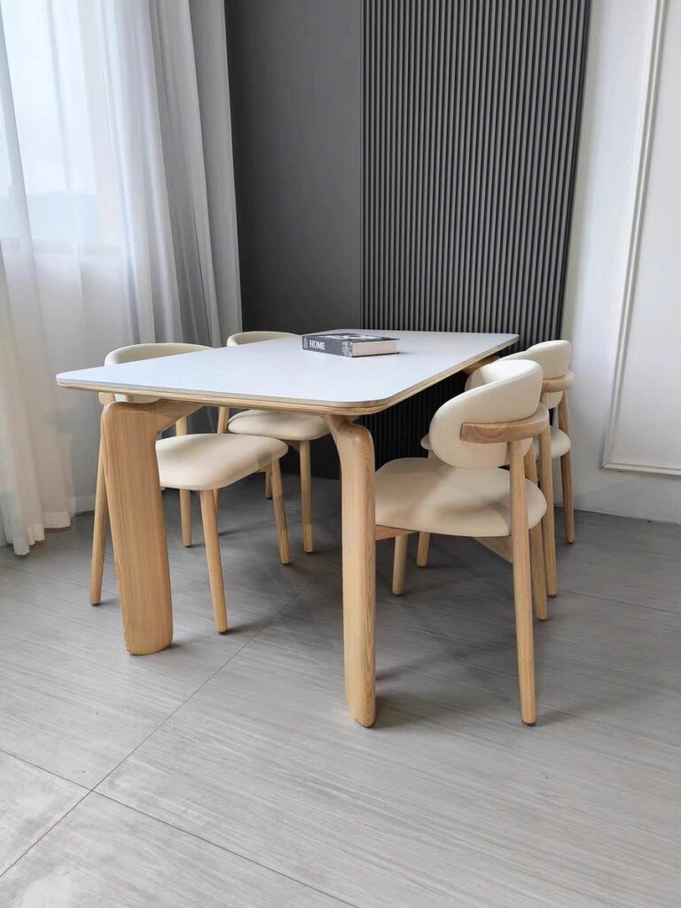 Bộ bàn ăn gỗ tần bì 4 ghế kết hợp mặt đá ceramic hiện đại – GS037