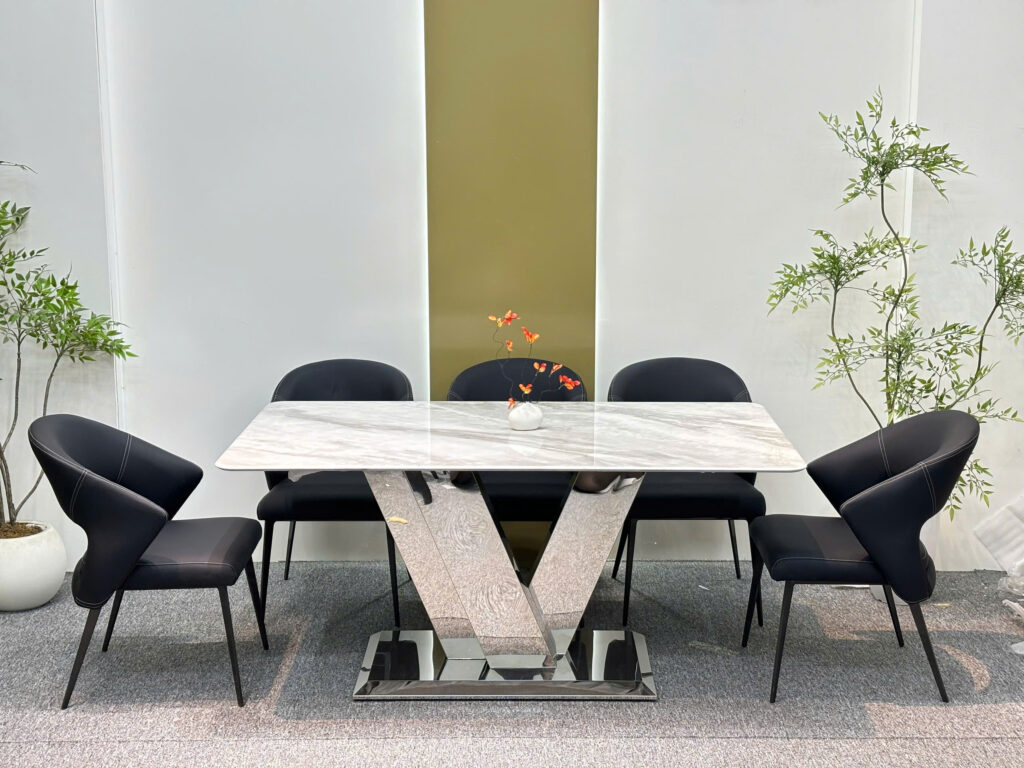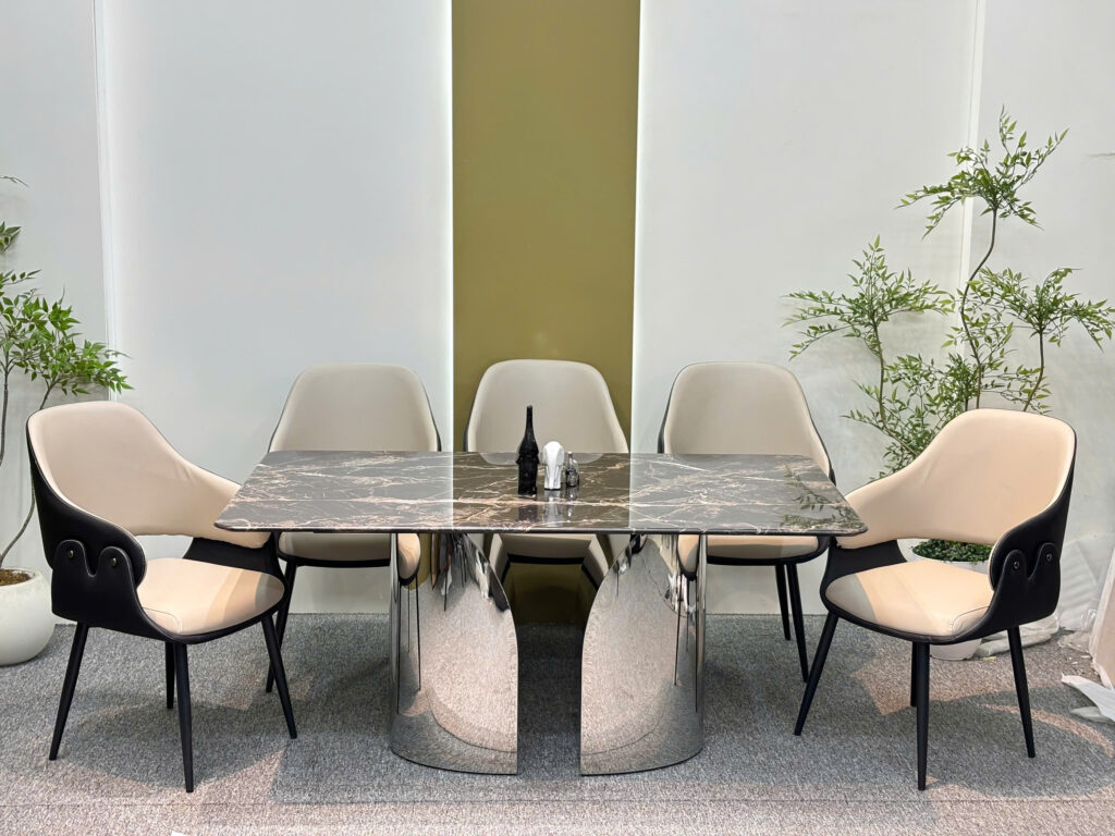 Bộ bàn ăn chân inox , mặt đá cao cấp, ghế bọc da nhập khẩu – GS04
