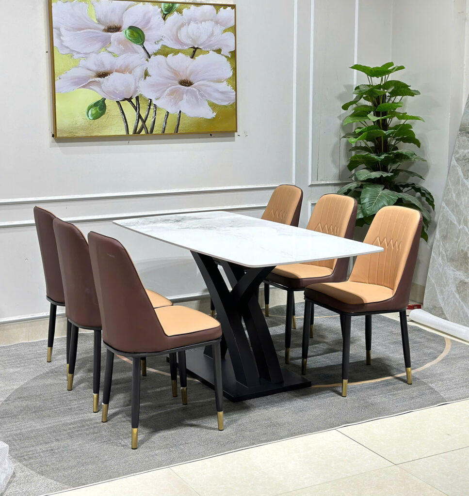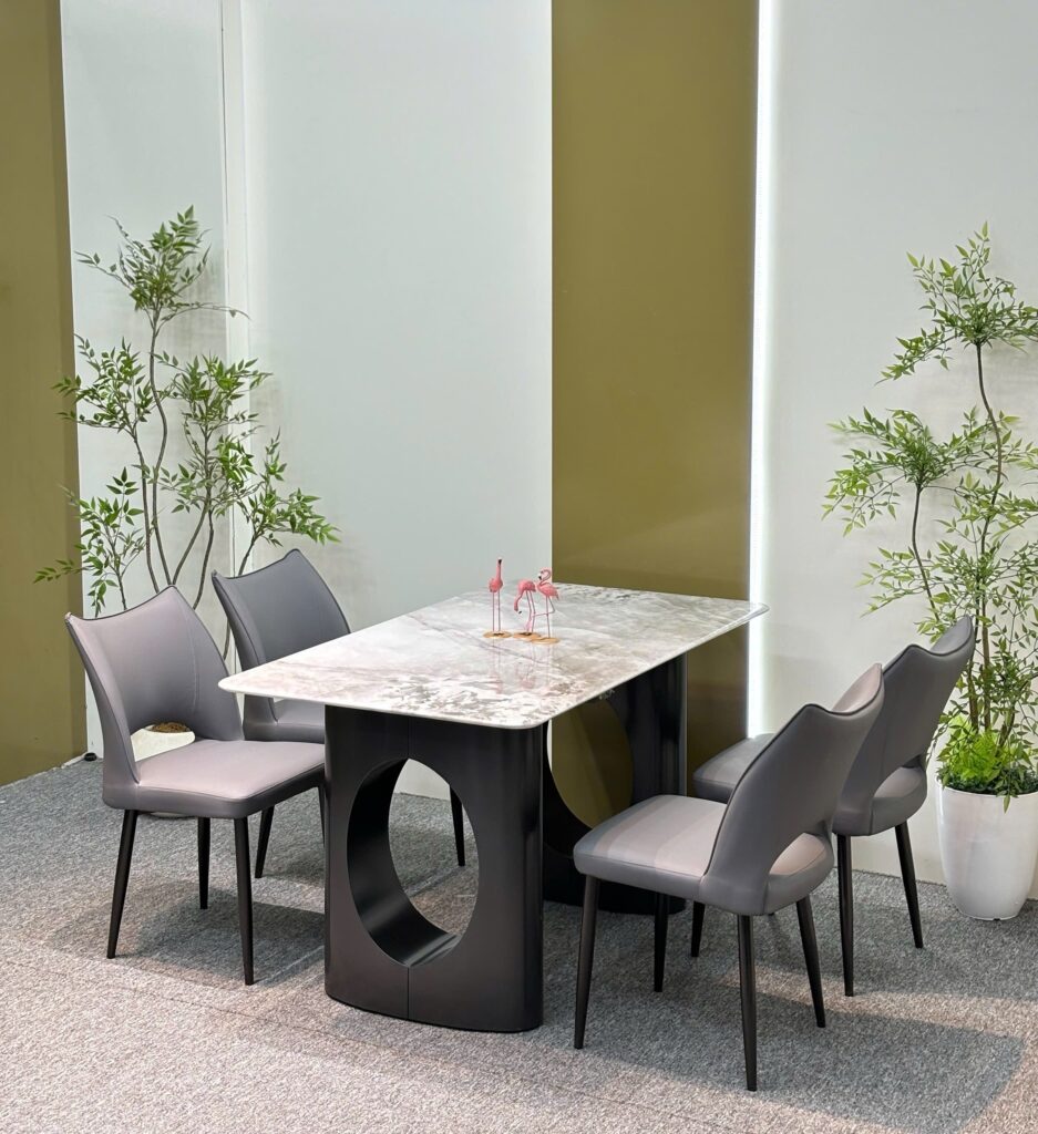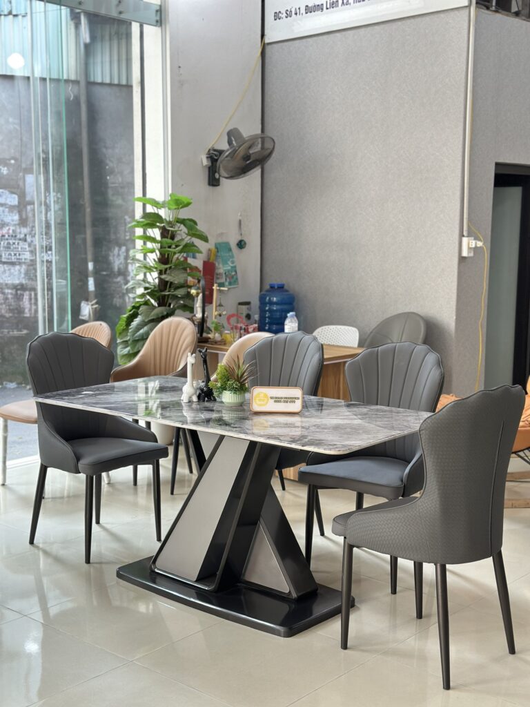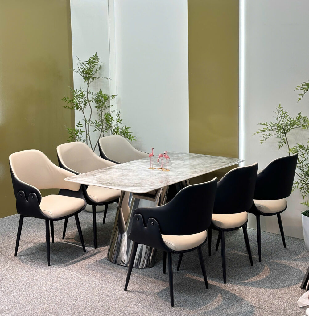 Bộ bàn 6 ghế , mặt đá ceramic , ghế da monet nhập khẩu êm ái – GS012