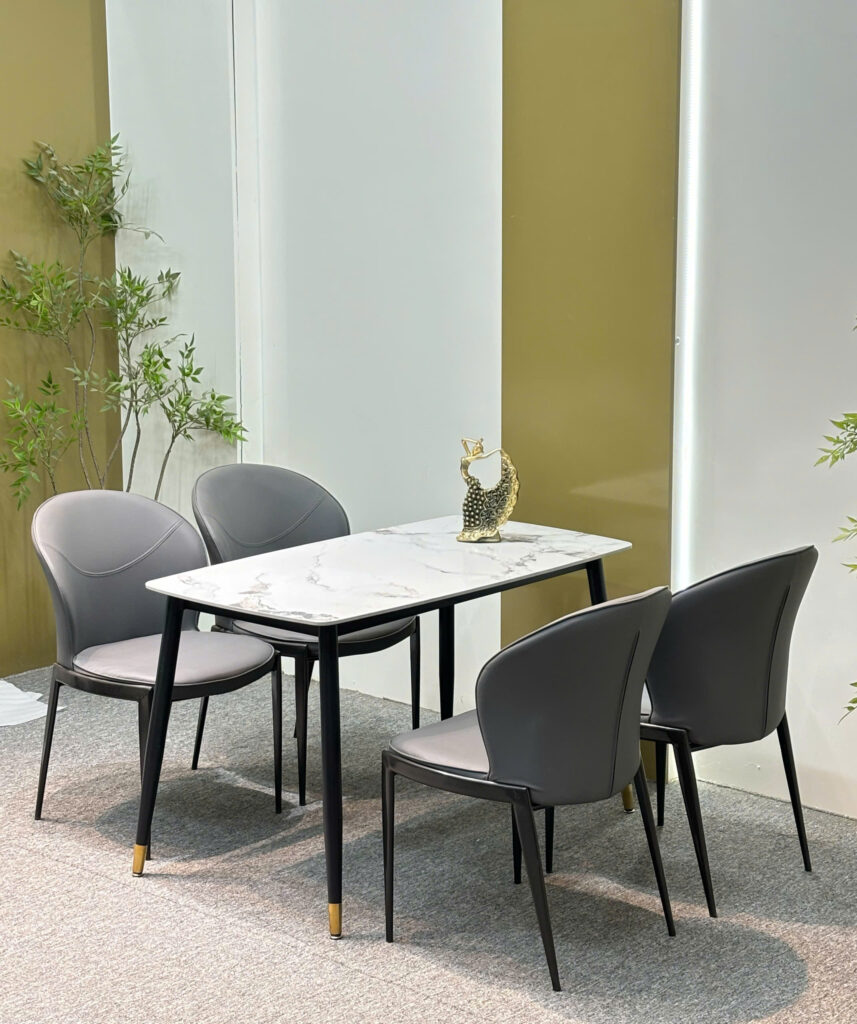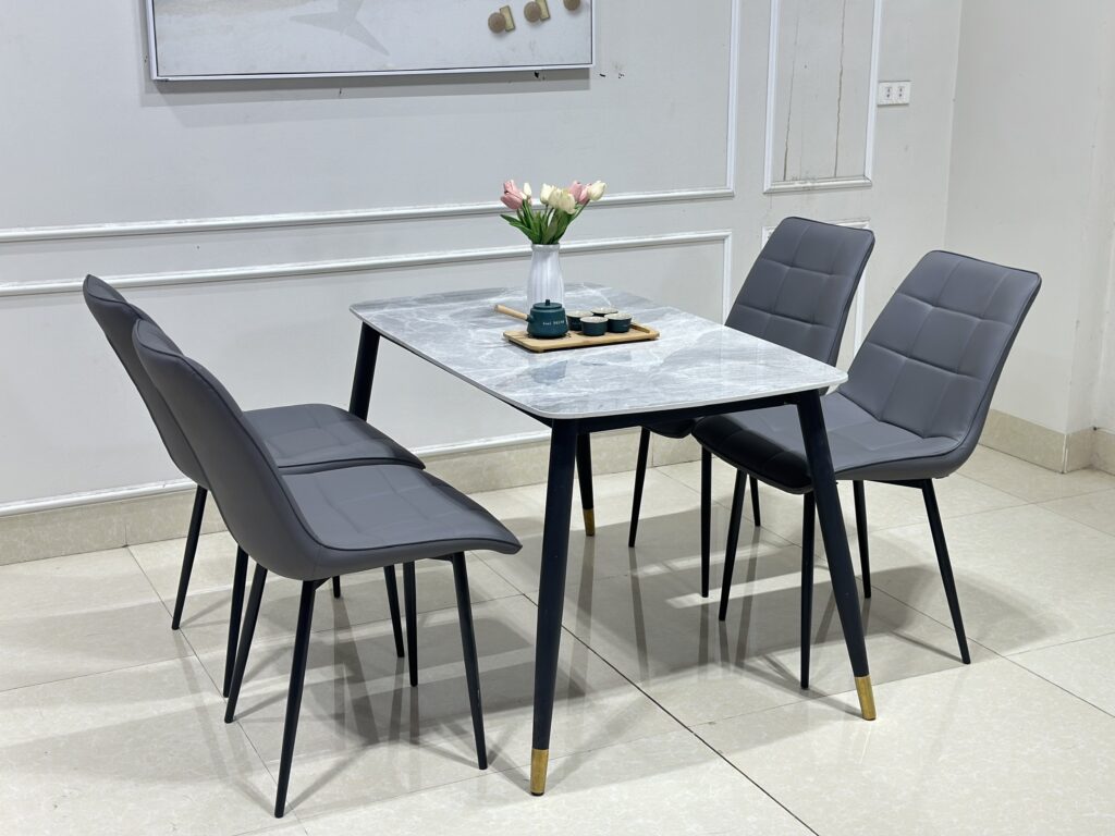 Bộ bàn ăn 4 ghế kiểu dáng mới, chân côn, mặt đá ceramic nhập khẩu – GS021