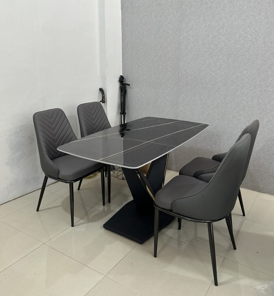 Bộ bàn ăn 4 ghế mặt đá vi tinh thể , chân bàn cao cấp, ghế da nhập khẩu – GS013