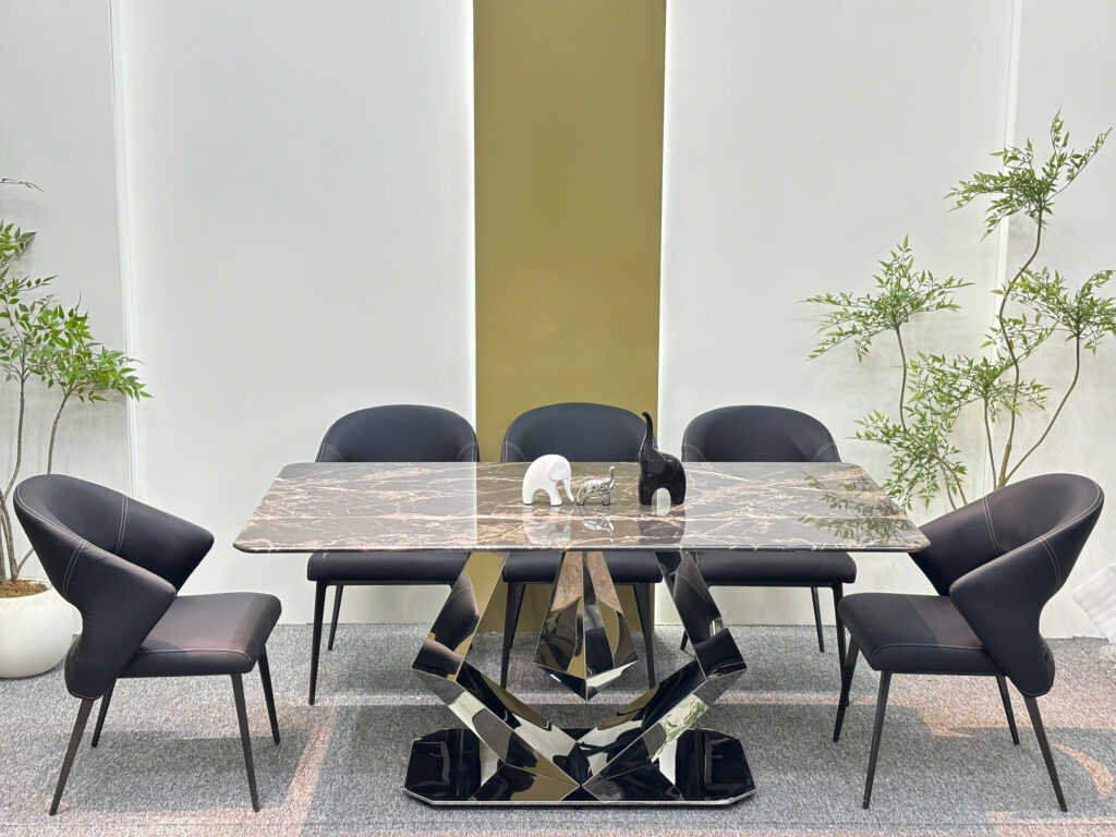 Bộ bàn ăn mặt đá vi tinh thể , chân kim cương, ghế da nhập khẩu cao cấp – GS09