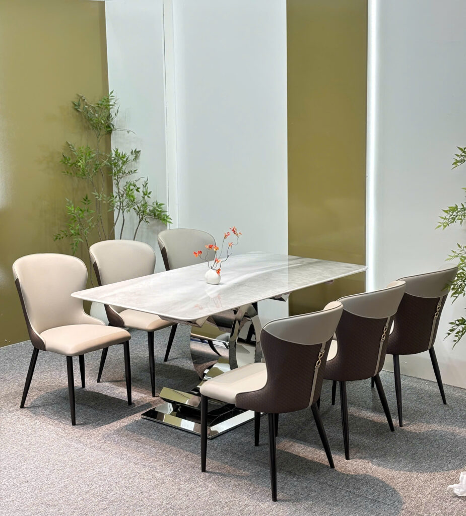 Bộ bàn ăn chân inox , mặt đá cao cấp, ghế bọc da nhập khẩu – GS04