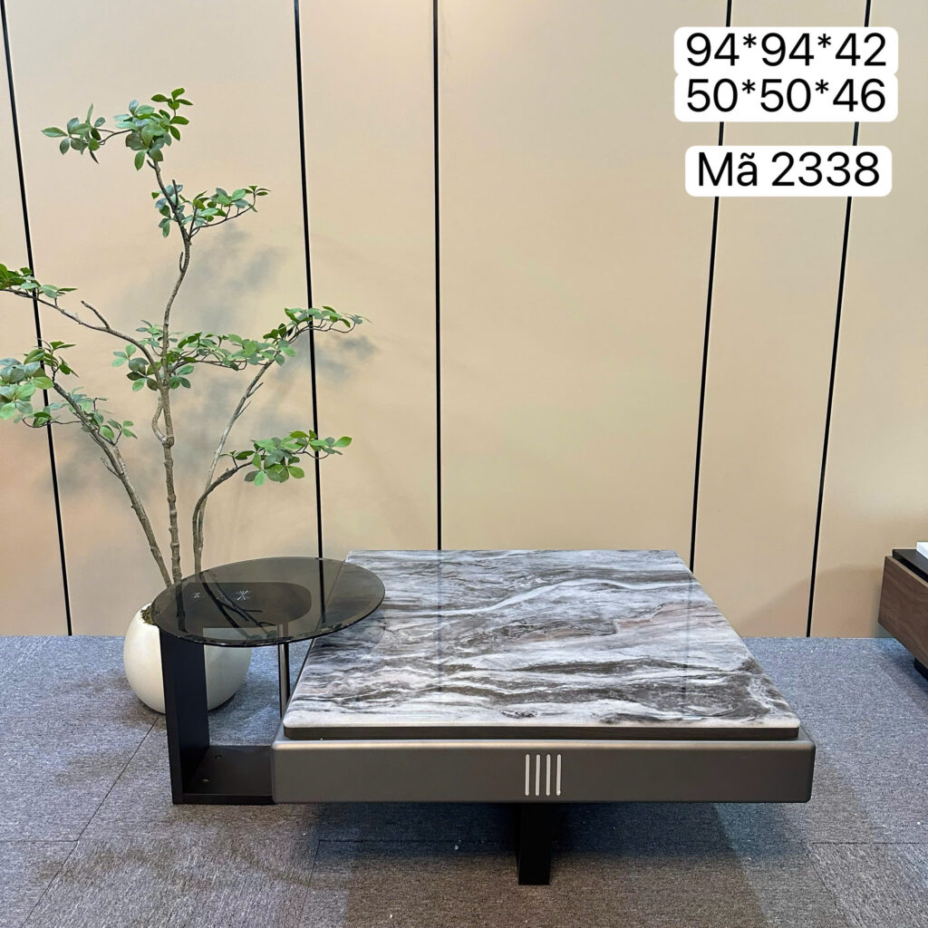 Bàn trà đôi mặt đá cẩm thạch – mã 2338