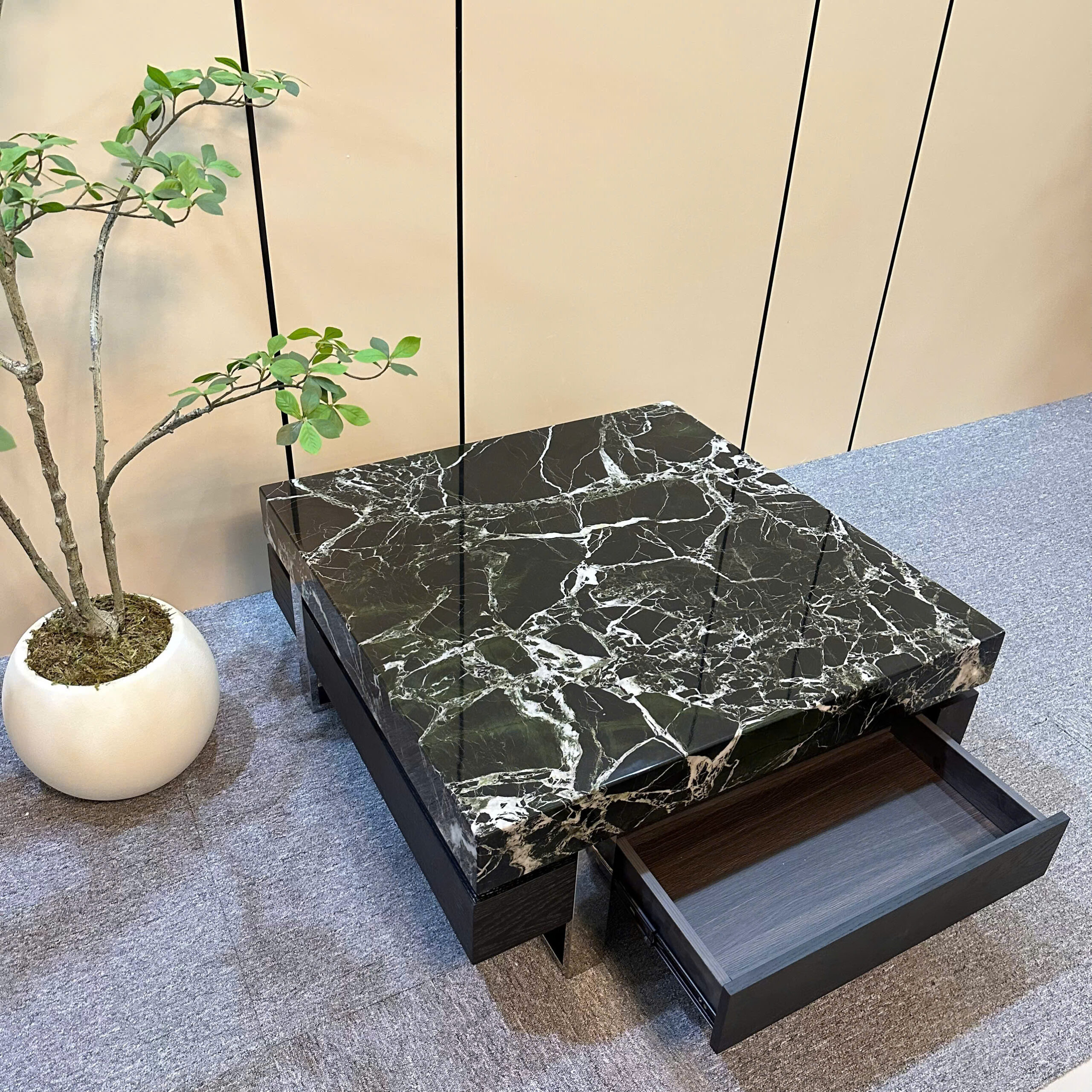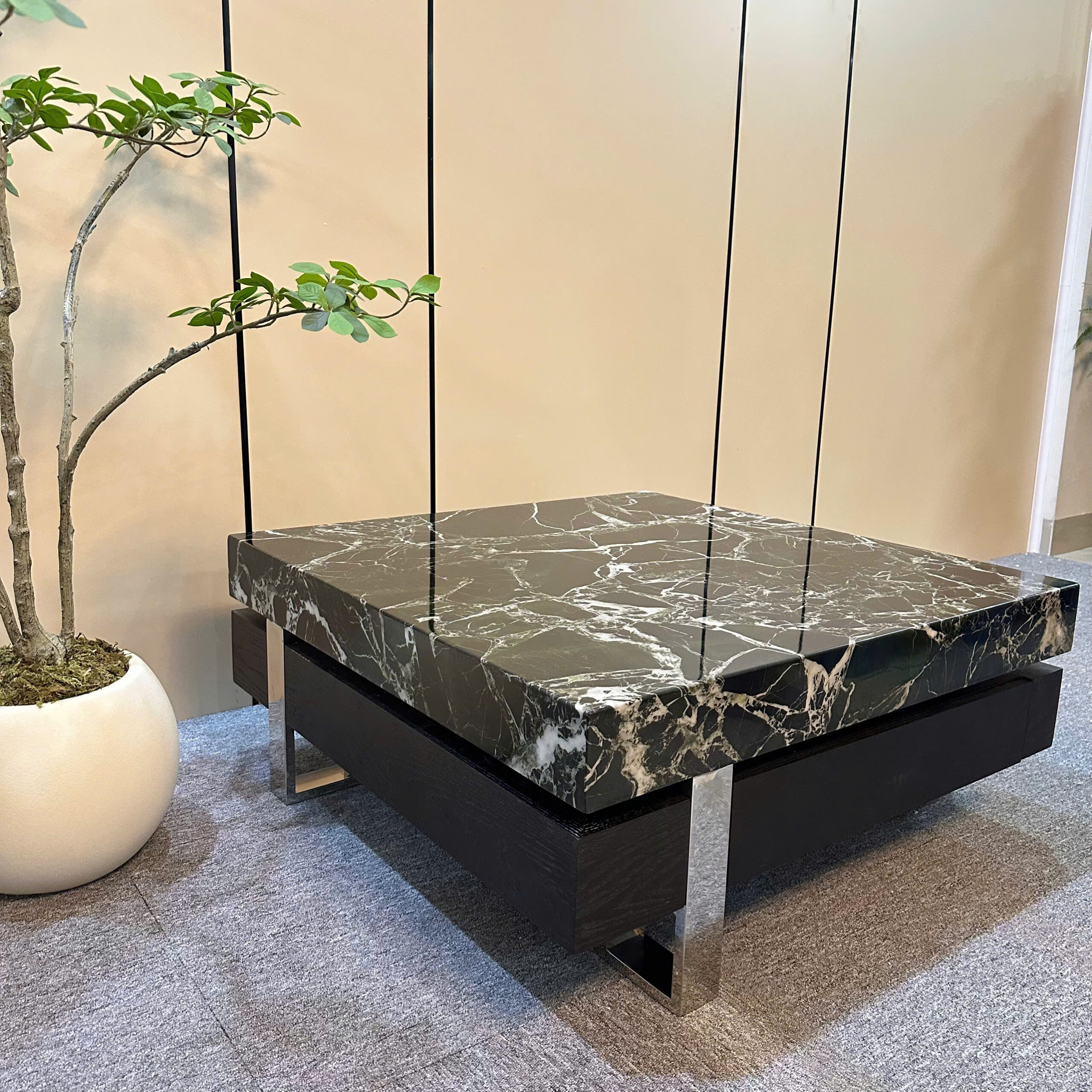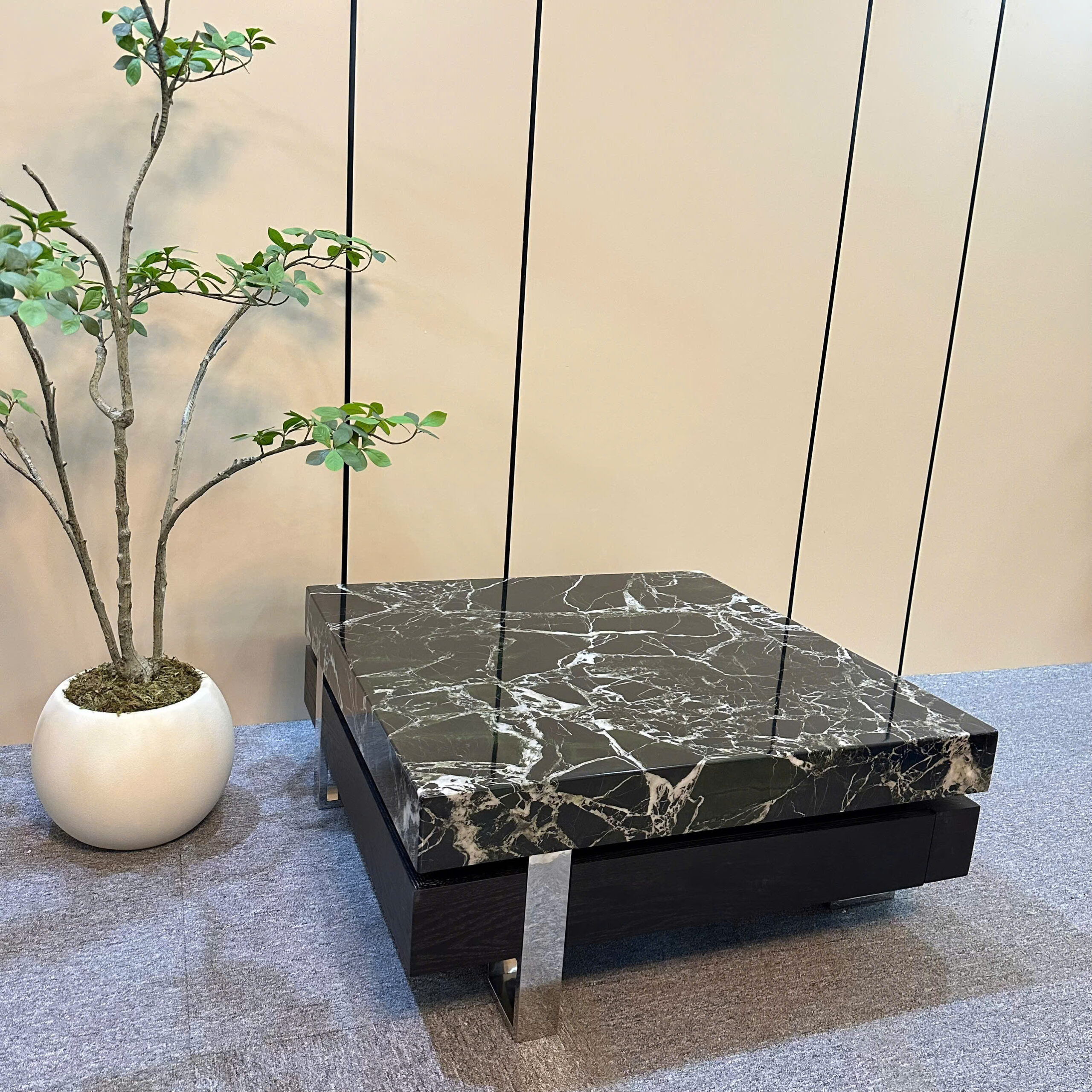 chất liệu mặt đá cẩm thạch kết hợp gỗ veneer , chân inox