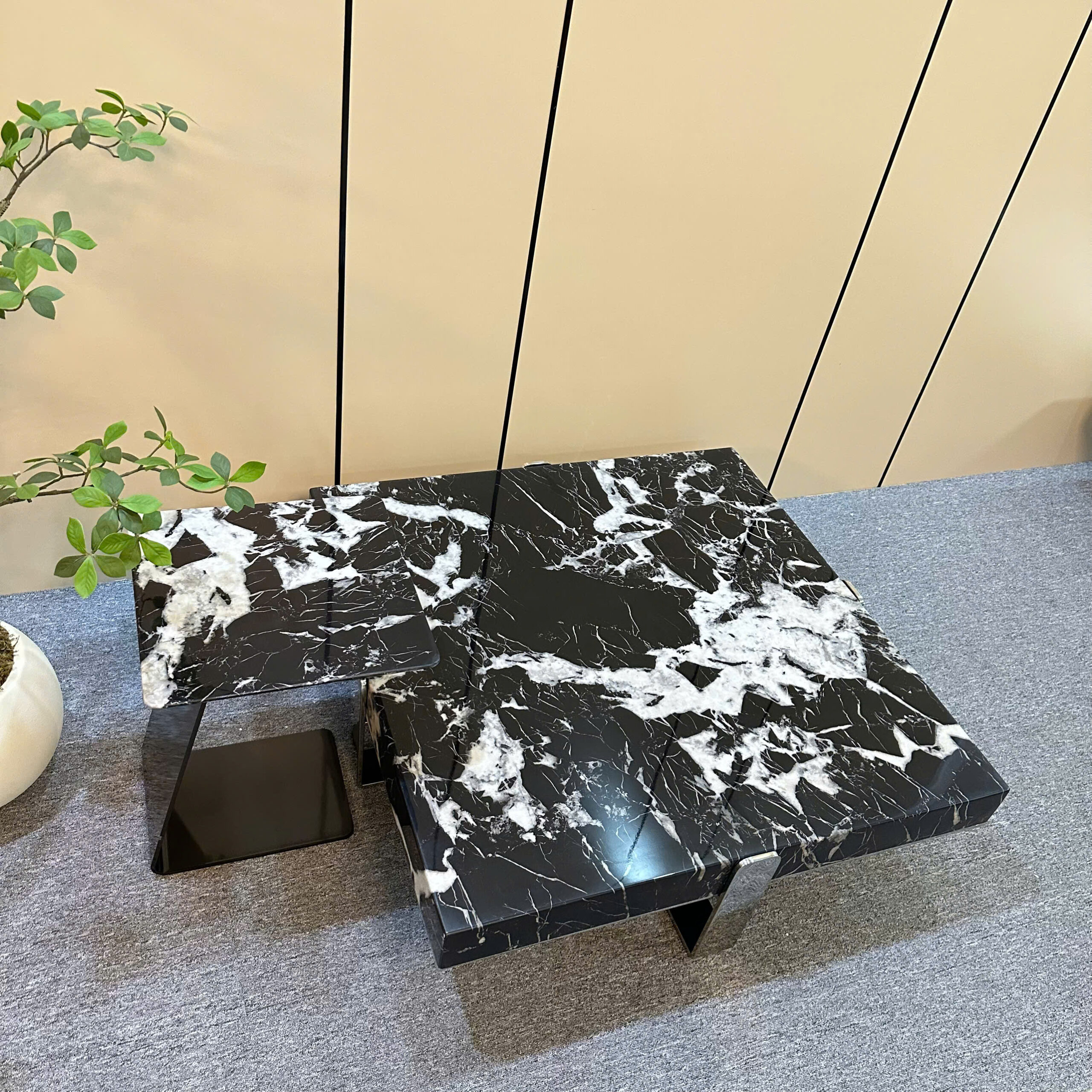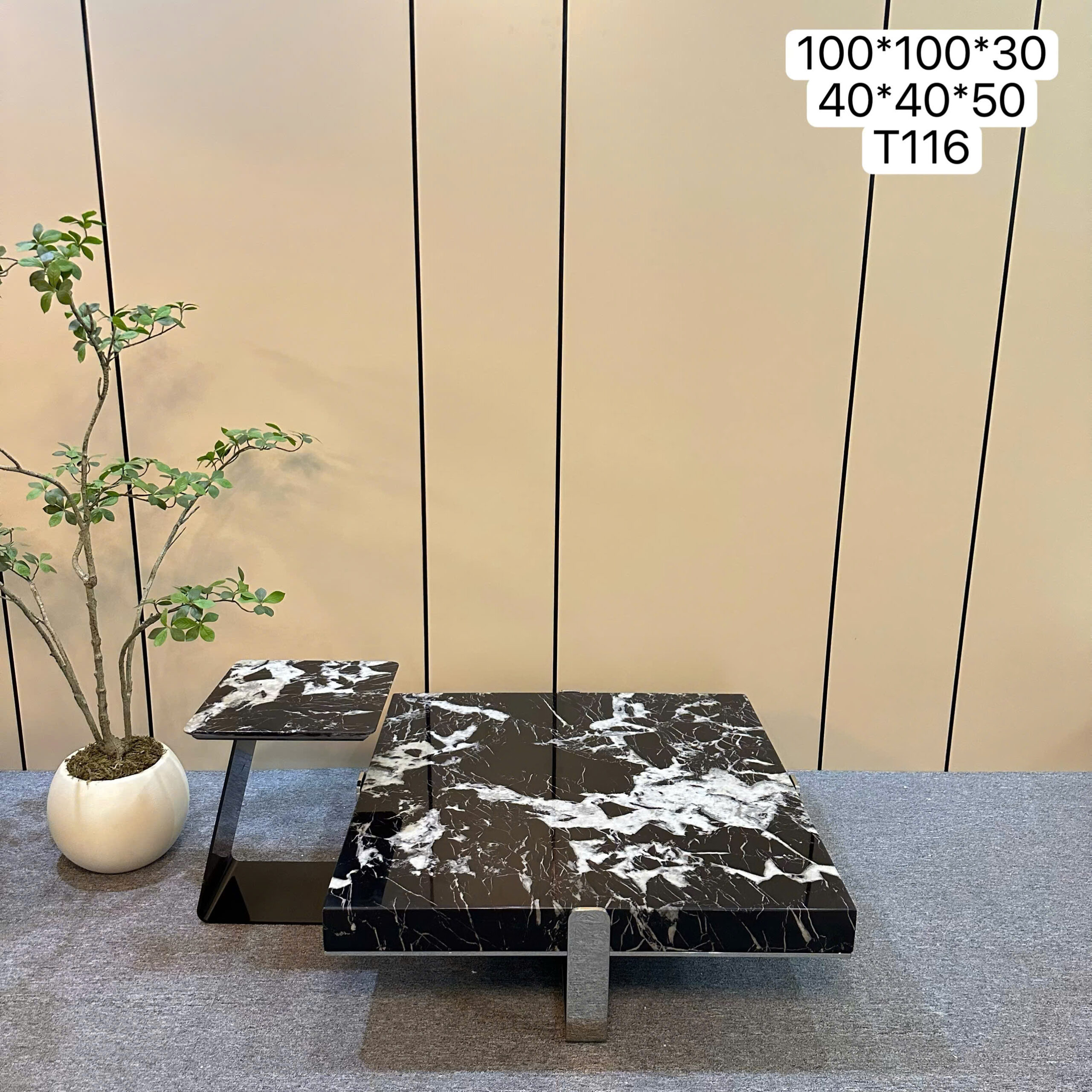 chất liệu đá cẩm thạch kết hợp gỗ vener , chân inox