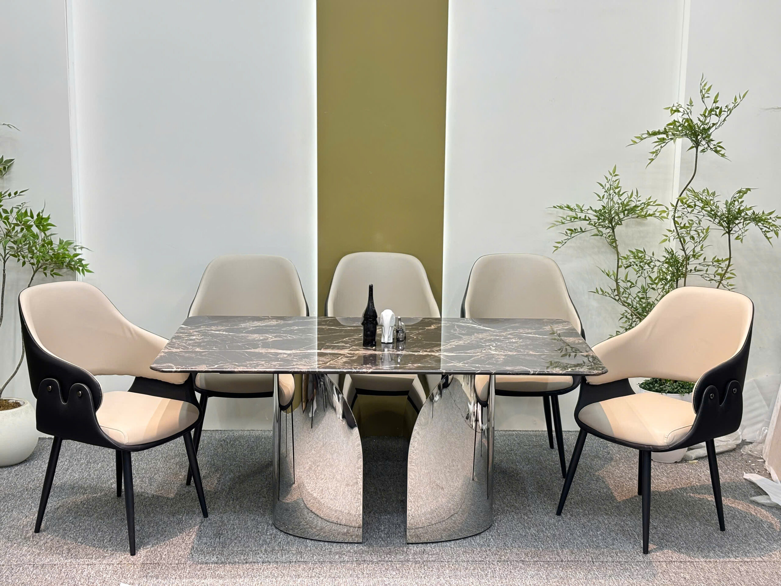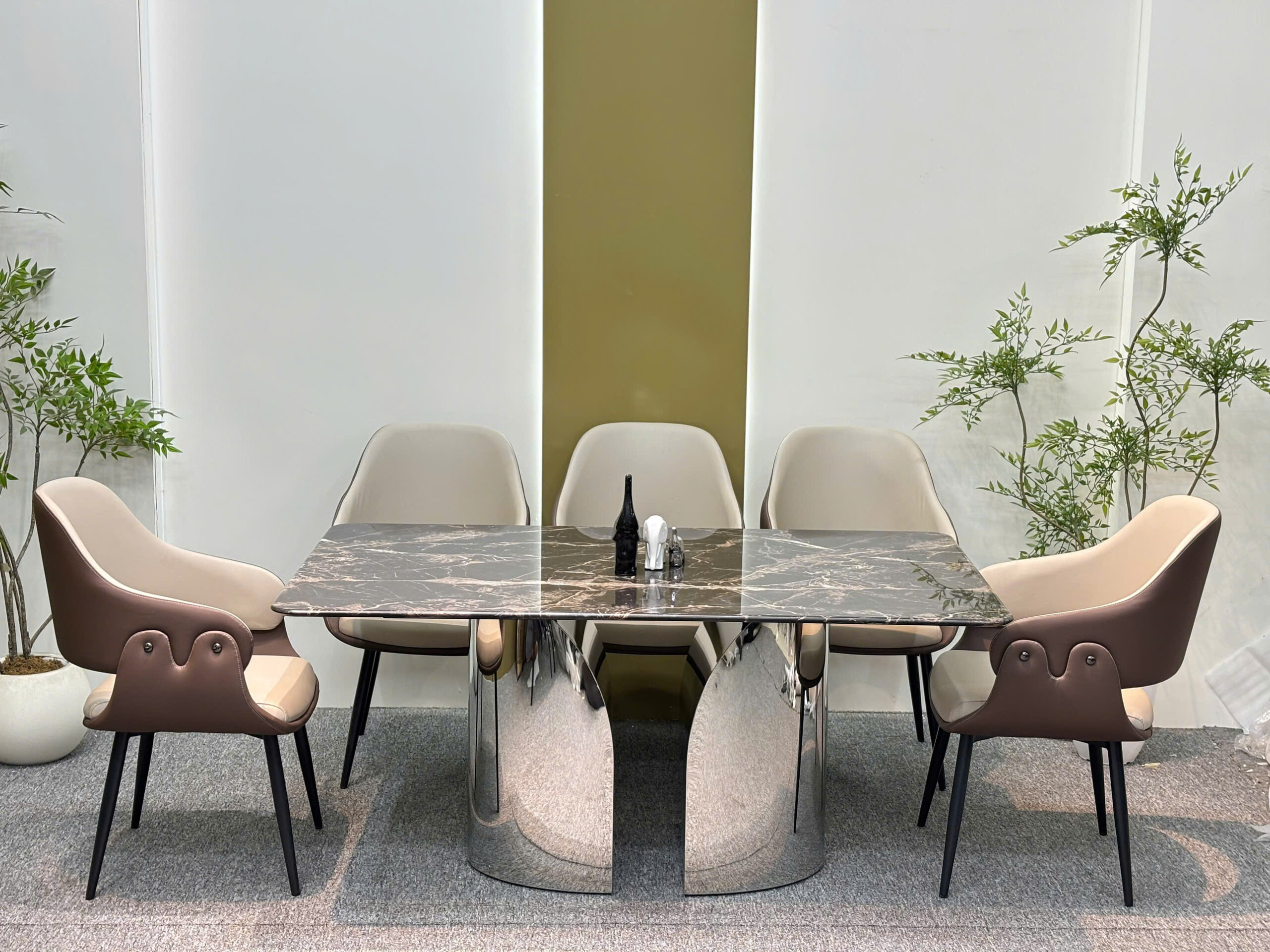 Bộ bàn ăn 6 ghế cao cấp, chân inox , ghế da nhập khẩu – GS017