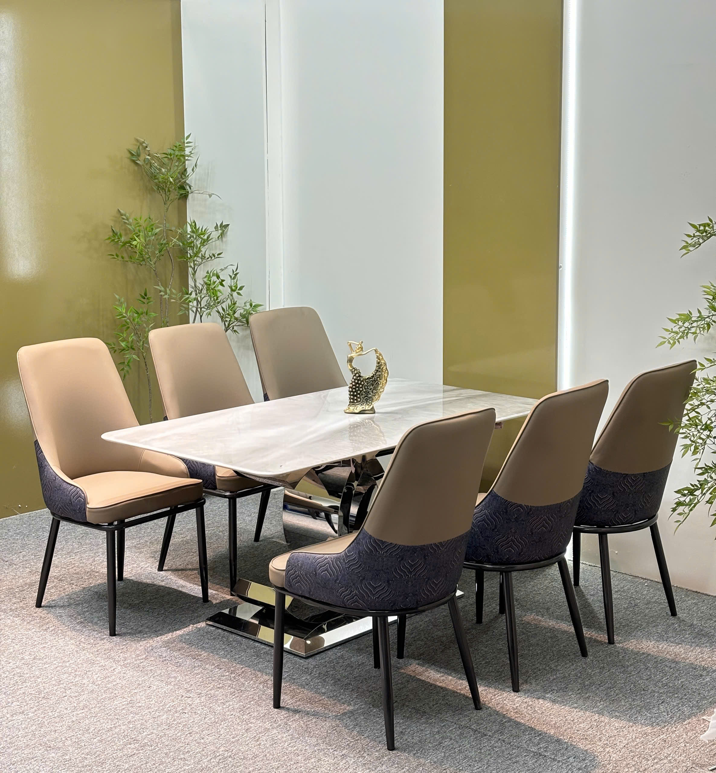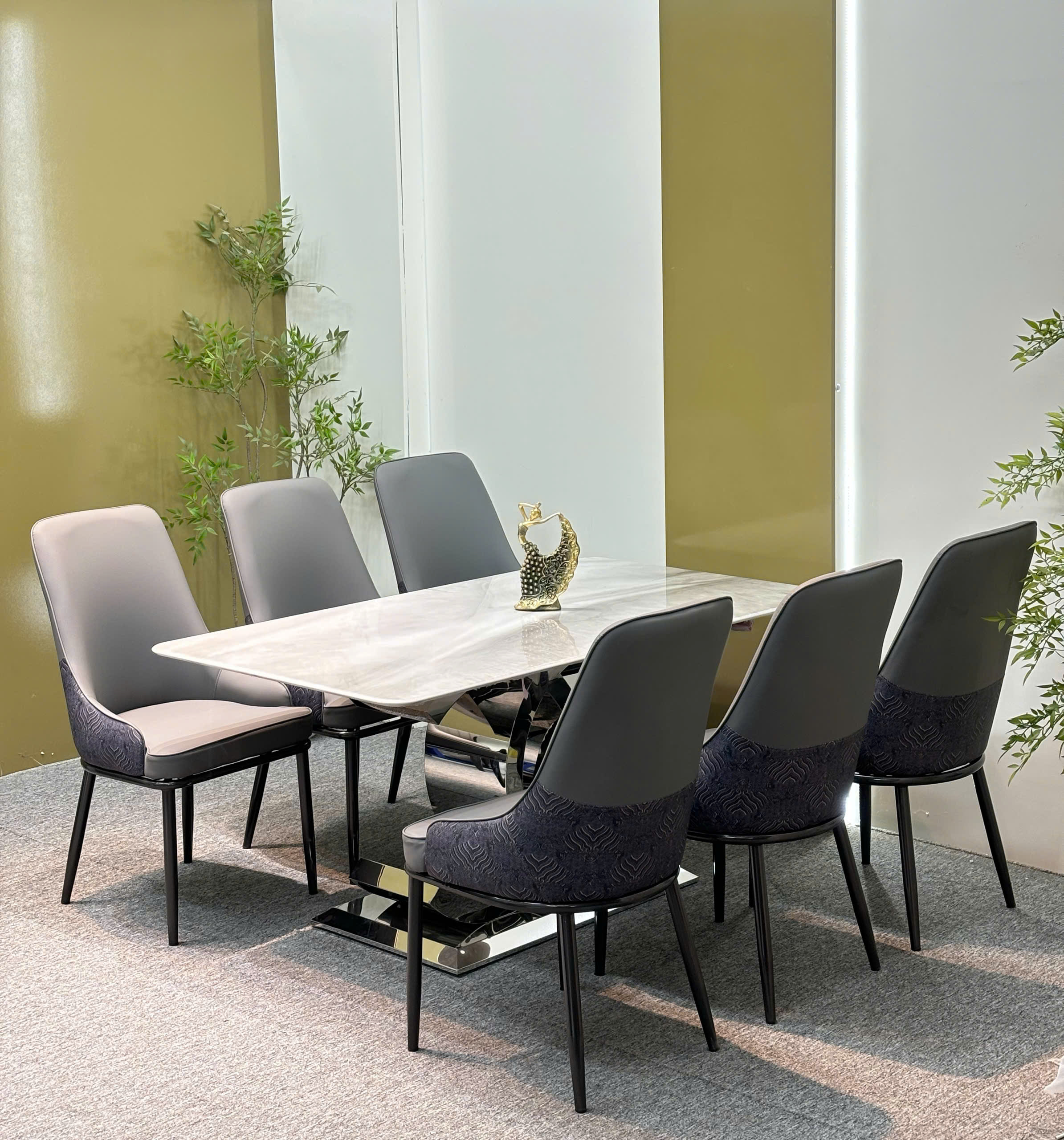 Bộ bàn ăn cao cấp, chân inox , ghế da nhập khẩu – GS02