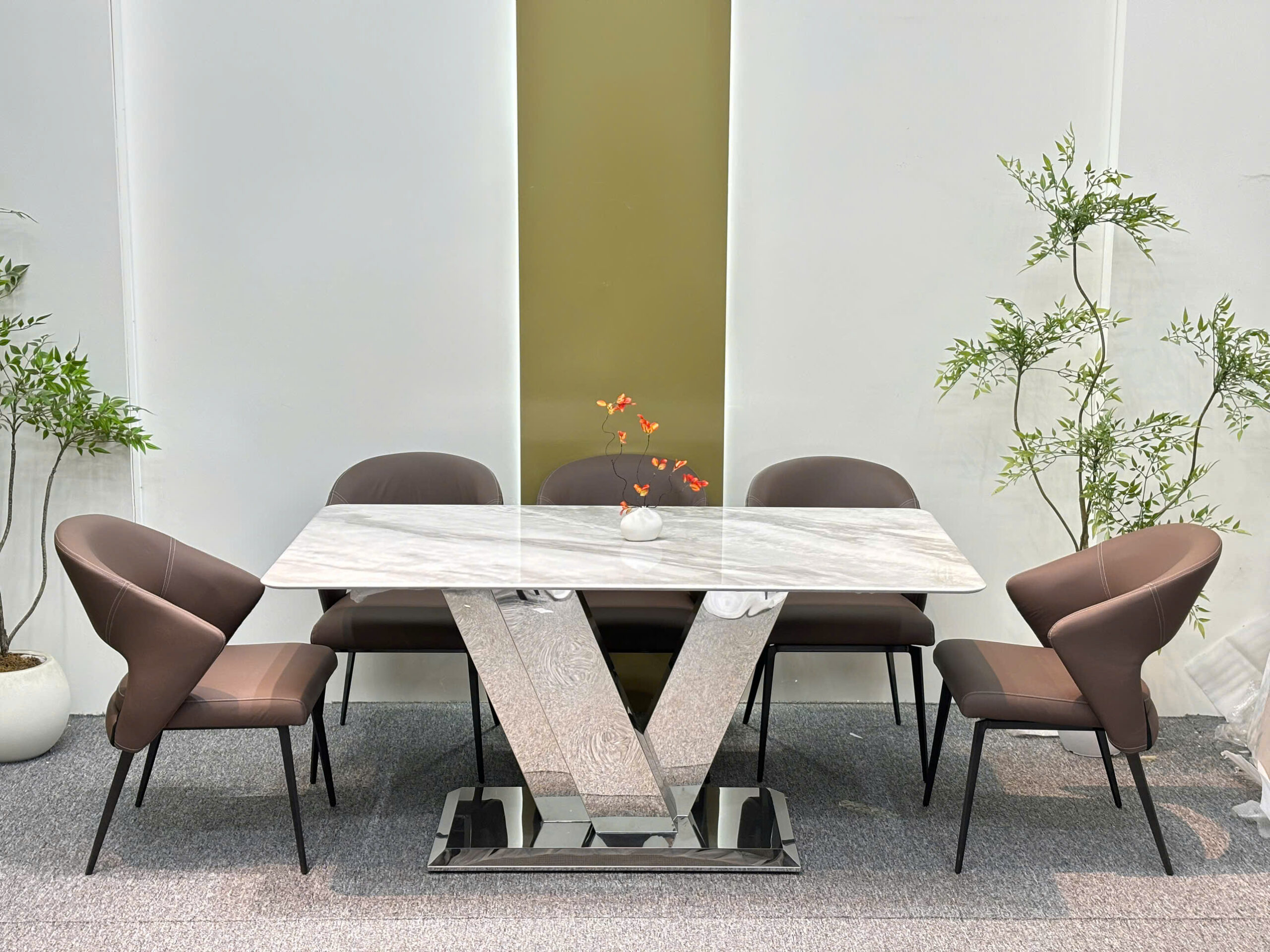 Bộ bàn ăn chân inox , mặt đá cao cấp, ghế bọc da nhập khẩu – GS04