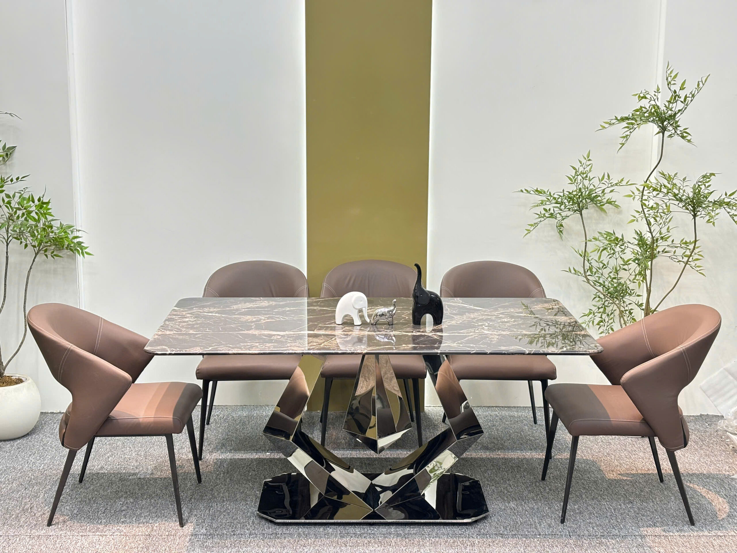 Bộ bàn ăn mặt đá vi tinh thể , chân kim cương, ghế da nhập khẩu cao cấp – GS09