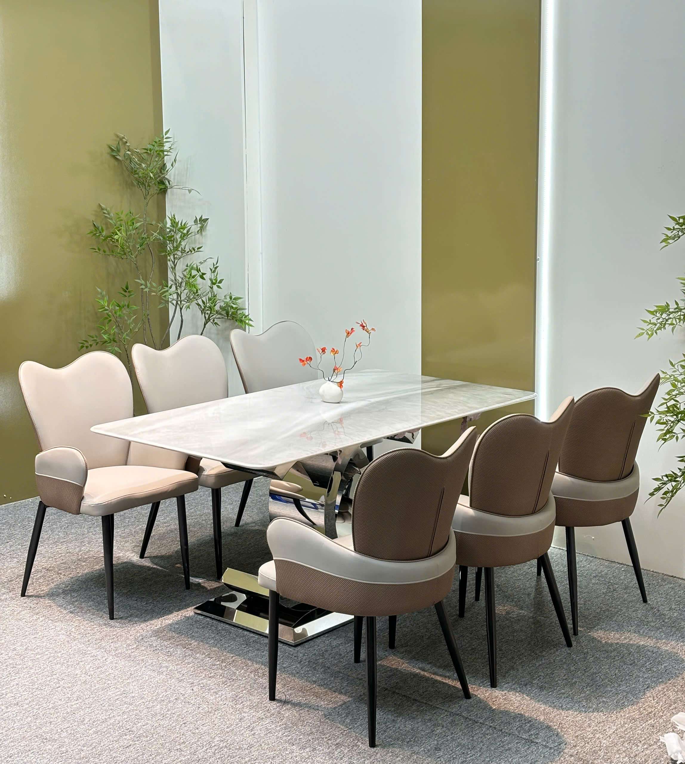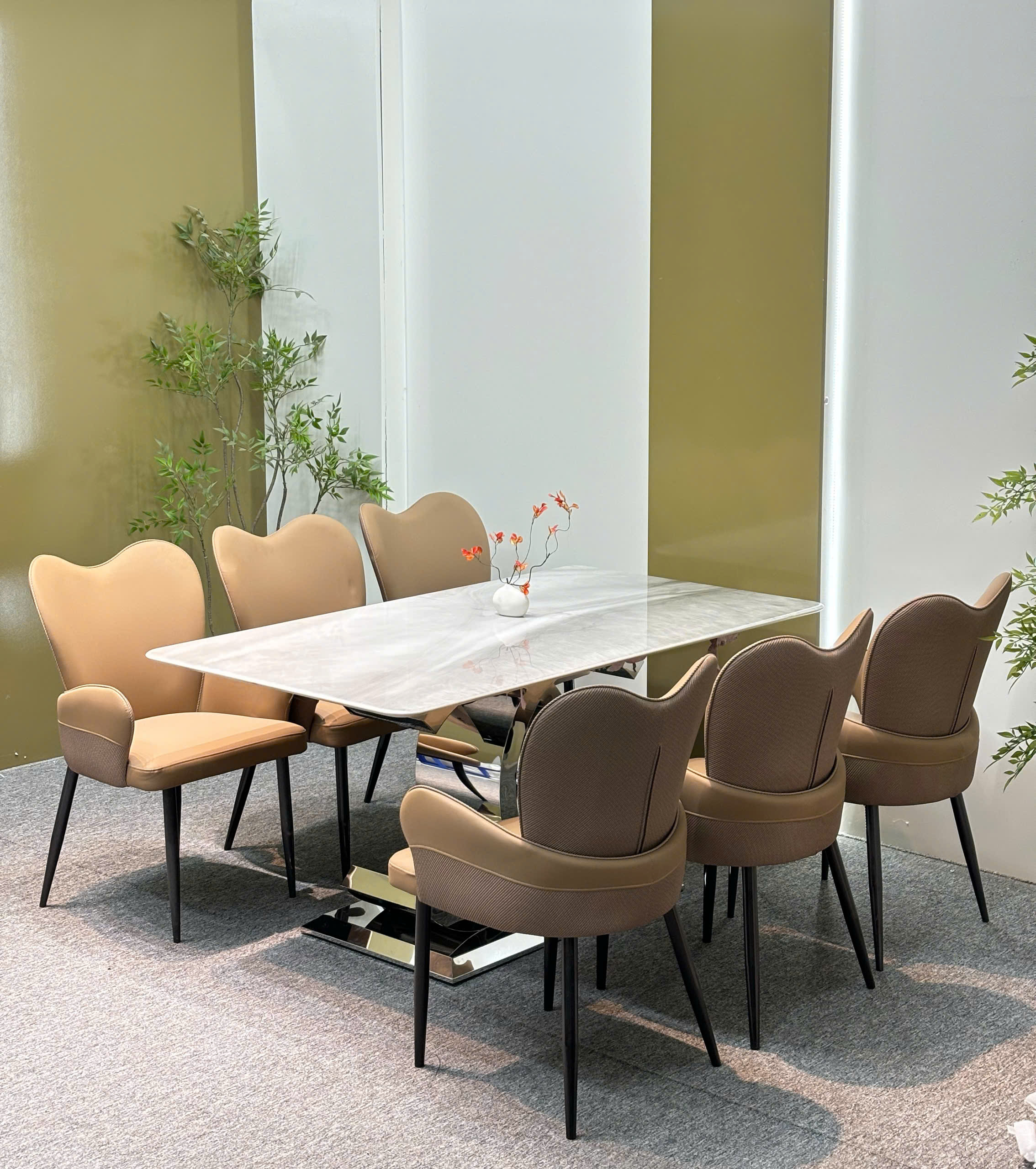Bộ bàn ăn mặt đá vi tinh thể , ghế da nhập khẩu cao cấp – GS03